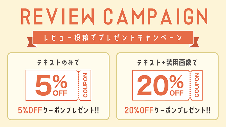 テキストのみのレビューで5%OFFクーポン、